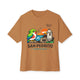 This oversized boxy tee brings a little Puerto Rican coastline to everyday wear. On soft white cotton, a colorful illustration of a san pedrito bird perches beside El Morro-style fort walls, a palm, and a glowing sunset. The relaxed silhouette and dropped shoulders make it feel like a borrowed favorite — easy to move in, cool on warm days, and vivid enough to spark conversations about beaches, home, and memory. Wear it for long walks along the boardwalk, lazy weekend coffee runs, or evenings spent around a bonfire singing familiar songs. The graphic reads like a small postcard: bright, warm, and quietly proud of place.